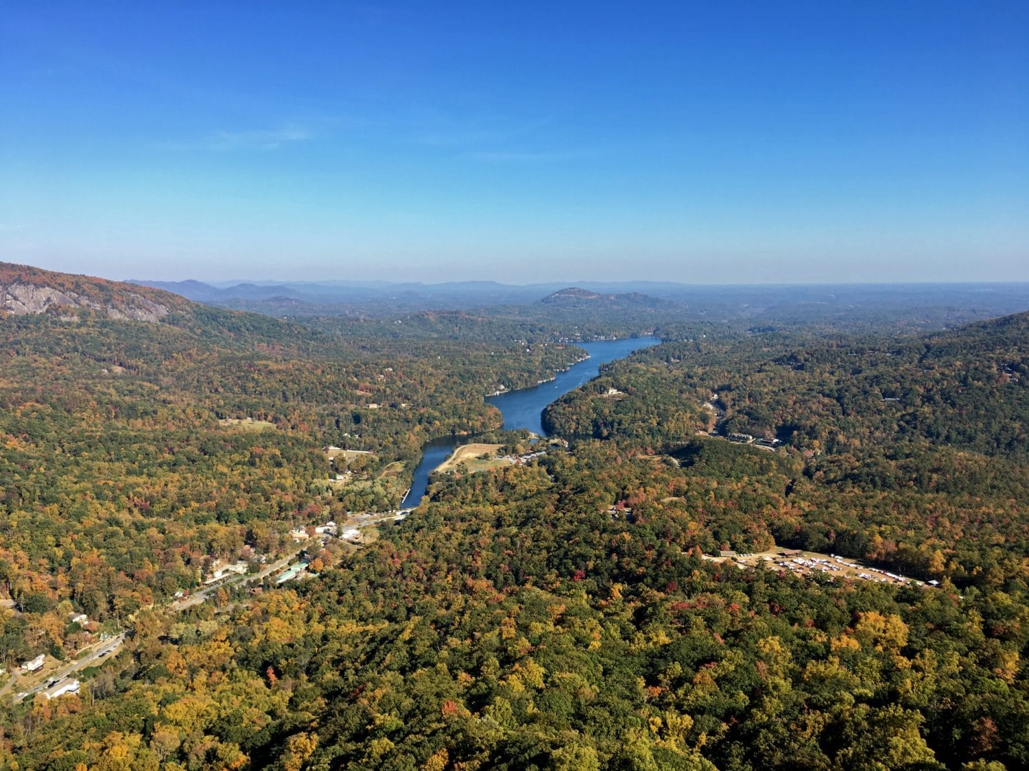 This 6,807-acre park offers a variety of hiking trails for all skill levels, incredible views, the Hickory Nut waterfall, and the Devil’s Head balancing rock. But its most famous feature is the 315-foot granite rock formation, Chimney Rock. You can feel the burn while walking up 500 steps to the top or take the elevator. Either way will give you stunning panoramic views of Hickory Nut Gorge, Lake Lure, and the surrounding countryside.